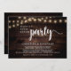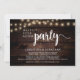 Belle fête de mariage heureux après, carte d'annonce / invitation de mariage en fuite, dans un chalet rustique en bois sombre, conception de guirlande lumineuse. C'est parfait pour votre réception de mariage et votre fête de célébration post-mariage.