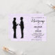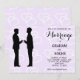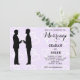 Ce faire-part de mariage gay présente deux marionnettes cool en silhouettes noires jumelées à un script élégant sur un arrière - plan de coeurs lilas pâle.