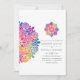 Invitation de mariage indien à l'aquarelle tendance avec des motifs de mandala arc-en-ciel colorés, personnalisables selon les spécificités de votre événement.