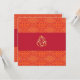 Invitations de mariage indien en motif batik rouge et orange. Personnalisez ces invitations de mariage indien avec vos propres détails de mariage indien. L'arrière de ces invitations de mariage indien rouge et orange montre Ganesha ग श épelé Ganesa et Ganesh, également connu sous le nom de Pillaiyar, Ganapati et Vinayaka est l'une des divinités les plus connues et les plus largement adorées. Seigneur des débuts et Seigneur des obstacles.