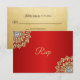 Cartes de réponse de mariage RSVP indiennes rouges élégantes et modernes. La couleur de fond peut être modifiée. Belle conception de Mandala en or et diamants. Le verso a un faux foil doré. Modèles modifiables - ajoutez votre texte. Contactez le designer pour d'autres variations.
