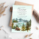 Laissez l'aventure commencer ! C'est une forêt, montagne, aventure commence thème, avec maman et bébé ours. Le tout pour un thème mariage de montagne. "L'aventure d'une vie" est l'inspiration. Ce design comprend des montagnes aquarelles rustiques avec un lac réfléchissant devant, et des pins autour du lac. Ours adulte avec petit devant.