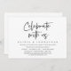 Carte d'invitation de mariage sur le thème de l'écriture moderne (Célébrez avec nous). Elle est parfaite pour votre dîner de mariage intime décontracté au bord du lac, la danse et la fête.