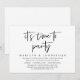 Carte d'invitation de mariage thème écriture moderne, élopement (C'est l'heure de faire la fête). Elle est parfaite pour votre dîner de mariage intime et décontracté au bord du lac, danser et faire la fête.