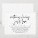 Carte d'invitation de mariage intime sur le thème du script moderne (Rien de Fantaisie, Juste l'Amour). Elle est parfaite pour votre cérémonie de mariage intime décontractée au bord du lac, dîner, danse et fête.