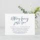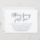 Carte d'invitation de mariage élopement sur le thème du script bleu marine moderne (Rien de Fantaisiste Juste l'Amour). Elle est parfaite pour votre dîner de mariage élopement décontracté au bord du lac, dansant et faisant la fête.