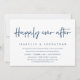 Carte d'invitation de mariage intime sur le thème bleu marine avec écriture moderne (fête après mariage heureux). Elle est parfaite pour votre dîner de mariage intime décontracté au bord du lac, la danse et la fête.