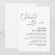 Ceci est la carte d'invitation pour une cérémonie de mariage intime, avec un design de script minimaliste (Célébrez avec nous)