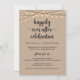 Belle carte d'invitation de mariage thème rustique moderne marron kraft, guirlandes lumineuses, cottage champêtre, Annonce de Mariage Intime (Célébration de Bonheur Éternel). C'est parfait pour votre réception de mariage et fête de célébration après-mariage. Ajoutez vos détails dans la même police / lettrage.