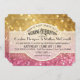 PALETTE DE COULEUR : couleur métallique dorée, COLLECTION DE DESIGN rose : Une invitation de mariage qui définira le thème de votre célébration et utilise l'option invitation Ticket Stub Corner Style. Ce design a été créé avec un délicieux teint doré à rose vif puis rose vif chatoyant, parties scintillant look Bokeh image. Moderne et tendance, style clinquant féminin, cette invitation s'inscrit dans un ensemble de faire-part de mariage simple et contemporain. Une couche demi-ronde semi-transparente avec bordure blanche a une disposition typographique de police du texte. Il a de jolies couleurs pastel douces et douces et une sensation de fille. Cool, hanche et tendance - ne manquez pas de plaire à la mariée pour son invitation et thème de la douche nuptiale.