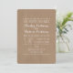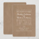 Un faire-part de mariage avec un carton de papier brun inspiré arrière - plan et texte blanc.
