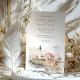 Invitation vos invités à une charmante fête côtière avec cette belle aquarelle faire-part de mariage avec l'emblématique Portland Head Light à Cape Elizabeth, Maine. L'oeuvre d'art capte de manière exquise la tour historique du phare blanc avec sa chambre à lanterne noire, et la maison classique du gardien au toit rouge, le tout perché au-dessus de falaises rocheuses et accidentées. La scène est rendue dans un style d'aquarelle douce et romantique, avec les eaux bleu-gris serein de l'Atlantique rencontre les marron terreux, rougeâtre-brun, et gris des falaises. Un ciel doux et atmosphérique dans les tons muets complète cette vue pittoresque de la Nouvelle-Angleterre. Cette invitation conviendra parfaitement à un mariage sur le thème nautique, une fête en Nouvelle-Angleterre, ou à des couples qui aiment le charme intemporel de la côte. L'avant présente élégamment les détails de votre mariage, tandis que l'arrière offre les "Détails du Finer" pour plus d'informations. La palette de couleurs est composée de blancs classiques, de rouge vif des toits, de marron terreux et de terre cuite des falaises, de bleus sereins et de tons ciel doux.