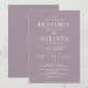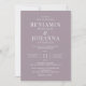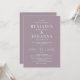 Invitation de mariage classique et élégante avec un arrière - plan lilas français et des lettres blanches. Conception uniquement textuelle avec un libellé traditionnel. Options de papier imprimé numérique ou physique. Personnalisez-le avec les noms de M. et Mme, l'emplacement du lieu, le registre, les informations RSVP et tous les détails que vous devez inclure. Produits de suite correspondants disponibles.