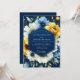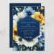 Ce design élégant présente une disposition vibrante de fleurs. Les pivoines jaunes souci peint à la manière d'un artiste, les anémones ivoire et les fleurs bleues éclatent sur un fond marine profond. Le feuillage vert luxuriant complète cette composition artistique et romantique. Le contraste saisissant crée une esthétique magnifiquement dramatique et mémorable pour votre jour spécial.
