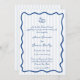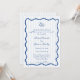 Whimsical manuscrit Français Bleu, faire-part de mariage. Caractéristiques modèles, cadre de ligne ondulée dessiné à la main et anneaux mariages doodle, arrière - plans rayés rose clair. Vous pouvez customiser les couleurs de police et d'élément en cliquant sur l'option "modifier à l'aide de l'outil de conception".