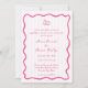 Cerise Pink, faire-part de mariage. Caractéristiques modèles, cadre de ligne ondulée dessiné à la main et anneaux mariages doodle, arrière - plans rayés rose clair.