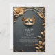 Invitation Mariage mascarade noir et or enchanté