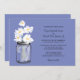 Parfait pour un mariage de style champêtre ou peut-être que vous aimez juste Mason Jars! Vieux Mason Jar vintage rempli de marguerites blanches contre un arrière - plan pourpre. Si vous avez des questions sur ce design ou si vous voulez un changement de couleur, envoyez-moi un courriel à paula@labellarue.com Vérifiez également que les cartes RSVP, RECEPTION et GUEST SEATING correspondent!