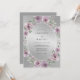 Ce design présente un fond métallisé argenté scintillant qui crée une atmosphère sophistiquée. Des roses délicates à l'aquarelle dans des nuances de mauve poussiéreux et de lavande sont disposées avec élégance, complétées par des feuilles vert sauge doux. La palette de tons froids et de pourpres atténués évoque une ambiance romantique et gracieuse adaptée à un événement haut de gamme.