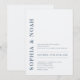 Cette invitation présente un arrière - plan sophistiqué bleu azur au design minimaliste. Les noms du couple sont mis en valeur par une typographie audacieuse et élégante en bleu poussiéreux, ajoutant une touche d'élégance moderne à l'invitation.