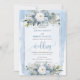Invitation Mariage minimal Pastel Bleu Peonies d'argent blanc