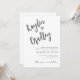 Invitations de mariage blanches avec texte noir. Les noms inclinés modernes au sommet sont surdimensionnés. L'invitation inclut "avec nos parents".