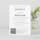 Cette faire-part de mariage minimaliste, simple et moderne présente un design élégant et élégant qui impressionne vos invités. L'invitation comprend un code QR qui permet aux invités d'accéder facilement aux détails de votre mariage en ligne, y compris la date, l'heure, l'emplacement et les informations RSVP. Le design est parfait pour les couples qui veulent une invitation sophistiquée et contemporaine, à la fois fonctionnelle et design. L'utilisation d'un code QR est un moyen pratique et innovant de faciliter et d'améliorer la planification de votre mariage. Vous pouvez entrer votre URL de site Web et générer un code QR. Tous les styles de texte, couleurs, tailles peuvent être modifiés selon vos besoins. Si vous avez besoin d'aide ou d'articles correspondants, n'hésitez pas à me contacter.