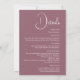 Levez votre papeterie mariage avec le Faire-part de mariage Dusty Pink Minimalist. Doté d'un arrière - plan rose pâle et sobre avec un élégant texte blanc, cette invitation présente les noms du couple, la date du mariage et le lieu sur le devant dans un design propre et moderne. Le dos fournit des détails mariages supplémentaires, assurant aux clients tout ce dont ils ont besoin dans un format élégant et organisé. Parfait pour les mariages romantiques, boho ou modernes, cette invitation ajoute une touche de sophistication et de chaleur à votre journée spéciale.