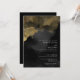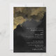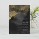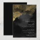 Imaginez une invitation de mariage qui incarne une élégance et un style modernes et minimalistes. Le fond est un noir profond et élégant, créant une base audacieuse pour le design. Un motif doré élégant se déploie sur celui-ci, réalisé avec des traits fluides et organiques d'aquarelle ou d'encre alcool, évoquant les lignes envoûtantes des formations d'agate ou de géode. Le texte présente un mélange de polices de caractères serif classiques et modernes en blanc net, ajoutant une touche fraîche et contemporaine. Le résultat est un look simple et chic, parfait pour une célébration minimaliste et élégante.
