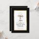 Invitation vos invités pour vous aider à célébrer votre journée spéciale avec cette élégante invitation avec script moderne, texte noir et or y compris un palmier artistique et cadre or métallique sur le devant de la carte. Un arrière - plan noir est à l'avant et à l'arrière.