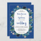 Arche moderne Boho bleu floral script arch avec joli peint à la main teintes chaudes de couleur bleue de l'année et vert foncé avec un masque rond. Parfait pour la fête de mariage à thème boho automne. Avec une typographie de script moderne.
