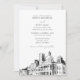 Invitation Mariage moderne Boston Skyline Sketch noir et blan