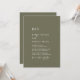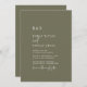 Ce chic faire-part de mariage monogramme vert olive moderne est parfait pour un mariage moderne. Le design boisé boho comprend une typographie bohème rustique unique et élégante dans une couleur verte boisée minimale. Personnalisez votre invitation monogrammée avec vos initiales.