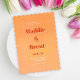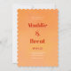 Présente un dégradé orange chaud et vibrant avec une finition aquarelle douce qui donne instantanément un ton joyeux et contemporain. La typographie serif en gras crée un contraste saisissant avec le fond dégradé lisse, tandis que le design à bord festonné ajoute une touche ludique et élégante. Parfait pour les couples qui souhaitent faire une déclaration moderne avec une touche artistique, cette invitation est entièrement personnalisable avec vos noms, date de mariage et détails de l'événement, ce qui en fait un moyen inoubliable d'inviter vos invités à votre jour spécial.