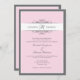 Traditionnel mais contemporain est au centre de cette belle faire-part de mariage. Le rose doux bordé de blanc et de gris fusain est à la base de cette invitation. Un panneau blanc met en évidence un monogramme avec les noms des honoraires de chaque côté accentué par un ornement décoratif sur le dessus et le dessous. Disponible en couleurs alternatives avec des produits correspondants.