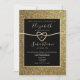 Invitation de mariage simple, moderne, élégante avec scintillement or et noir avec cœur de corde romantique et écriture calligraphique moderne.