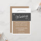 Invitation de Mariage Moderne Élégante Simple Script. Invitation de mariage simple et élégante en noir, blanc et marron avec un script blanc tendance. Personnalisez la carte avec vos données.