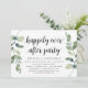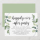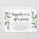 Carte d'invitation thématique Moderne Rustique avec Eucalyptus Verdure et écriture noire (avec titre de carte : fête pour toujours heureux). Elle est parfaite pour votre réception de mariage en elopement / fête de célébration après le mariage. Ajoutez vos détails avec une police / lettrage noir assorti.