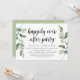 Carton d'invitation sur le thème de la verdure rustique moderne Eucalyptus, écriture noire (avec titre sur la carte: fête pour toujours heureux). C'est parfait pour votre réception de mariage en fuite / fête de célébration après le mariage. Ajoutez vos détails dans une police / lettrage noir assorti.