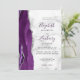 Le bord gauche de cette élégante faire-part de mariage moderne est orné d'une bordure d'aquarelle violette ornée d'une parties scintillant en faux argent. Le texte personnalisable combine écriture manuscrite violet foncé avec copperplate noire et polices italiques sur un arrière - plan en marbre gris et blanc. L'envers est assorti d'un design d'agate violet et argenté.