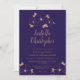 Design sophistiqué et moderne, cuivre métallique design floral sur faire-part de mariage arrière - plan bleu minuit.