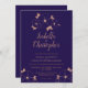Design sophistiqué et moderne, cuivre métallique design floral sur faire-part de mariage arrière - plan bleu minuit.