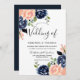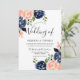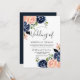 Carton d'Invitation de Mariage Moderne Fleurs Rose Pâle et Bleu Nuit