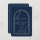 Un élégant bleu marine, et or géométrique arche Faire-part de mariage classe. Cette élégante faire-part de mariage bleu marine et or est parfaite pour toute élégante fille chic sophistiquée. Ce design est idéal pour un événement de fête branché et élégant. Customisez ce design avec votre propre message et des informations personnalisées. Tous les dessins sont imprimés.