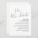 Ceci est la carte d'invitation pour une fête de mariage intime, avec un design de script minimaliste / minimalisme (Célébrons maintenant)