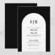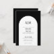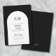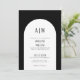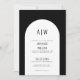 Faire-part de mariage noir et blanc à monogramme en arche simple moderne. Une invitation de mariage minimaliste avec une arche très simple et des polices élégantes et simples. Un monogramme en haut et au dos pour les initiales du couple. Vous pouvez personnaliser cette invitation dans les couleurs de votre choix. Il y a une seconde "arche" si vous souhaitez ajouter une ligne d'accent à l'arche. Utilisez simplement les éléments "ovale" et "carré" tout en bas de la liste pour changer ces couleurs.