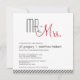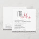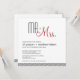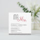 faire-part de mariage moderne du milieu du siècle avec palette de couleurs noir, blanc et rouge. Le texte "M. + Mme" est écrit en haut de l'invitation dans la amusante typographie rétro. Des bandes diagonales ornent le fond du invitation à l'avant et à l'arrière.