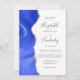 Le bord gauche de cette élégante faire-part de mariage moderne est orné d'une bordure d'aquarelle bleu royal ornée d'une parties scintillant en faux or. Le texte personnalisable combine écriture manuscrite, copperplate et polices italiques en gris fusain sur un arrière - plan blanc. L'envers est assorti d'un design d'agate bleu royal et or.
