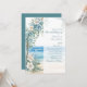 Définissez le ton d'une célébration de bord de mer chic et élégante avec notre invitation de mariage à arche florale et plage tropicale moderne. Ce design frais et contemporain présente une superbe représentation à l'aquarelle d'une vue océanique tropicale, encadrée par une arche florale luxuriante. Avec seulement la moitié de l'arche visible en arrière-plan, la composition asymétrique crée une esthétique moderne et audacieuse. Des fleurs délicates bleues et blanches avec des feuilles vertes douces améliorent l'élégance bohème de cette invitation, tandis que le texte est disposé de manière élégante sur le côté droit pour un look jeune et élégant.