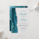 Le bord gauche de cette élégante invitation de mariage moderne présente une bordure d'agate aquarelle turquoise rehaussée de fausse brillance argentée. Le texte personnalisable combine une écriture manuscrite turquoise avec des polices copperplate et italique grises charbon sur un fond gris pâle. Le verso présente un motif assorti d'agate turquoise et argent.
